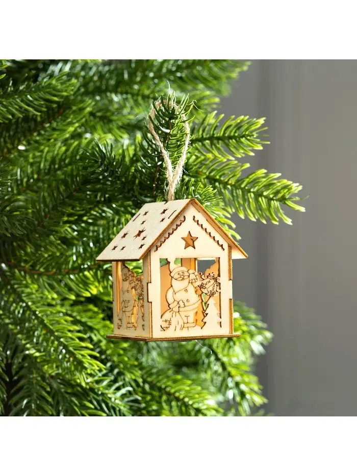 Подвеска световая «Дом Деда Мороза», 7×6×8 см, 1 LED, от батареек AG10×3, свечение тёплое белое