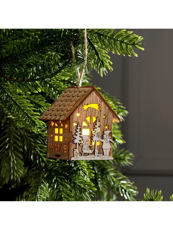 Подвеска световая «Дом Деда Мороза», 7×6×8 см, 1 LED, от батареек AG10×3, свечение тёплое белое