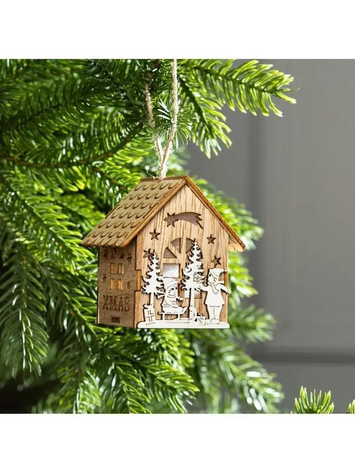 Подвеска световая «Дом Снегурочки», 8×4×8.5 см, 1 LED, от батареек AG10×3, свечение тёплое белое