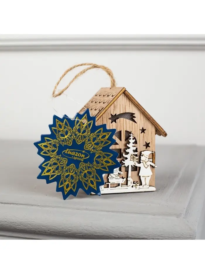 Ёлочная игрушка «Домик с детьми», 8×4×4 см, от батареек, свечение тёплое белое