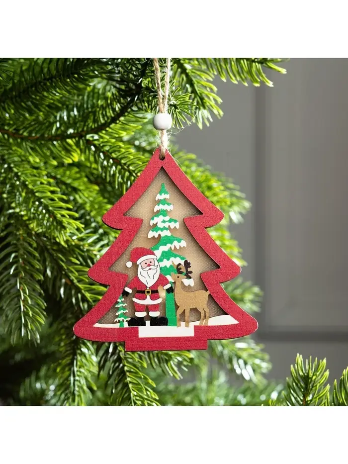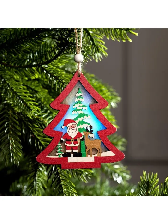 Ёлочная игрушка «Красная ёлочка с Дедом Морозом», 11×11×1.5 см, от батареек, свечение RGB