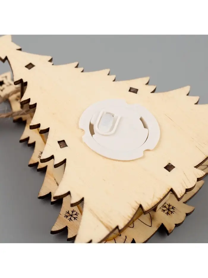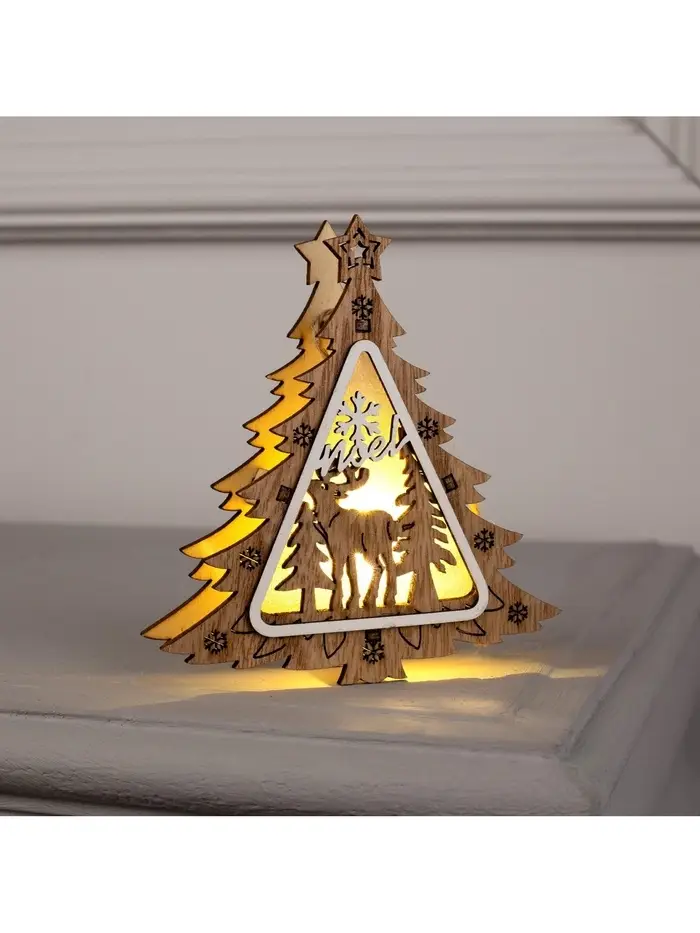 - Природное тепло в свете: Мягкое свечение от светодиода выгодно подчёркивает фактуру натурального дерева. Тёплый белый свет создаёт эффект живого огонька в зимнем лесу.