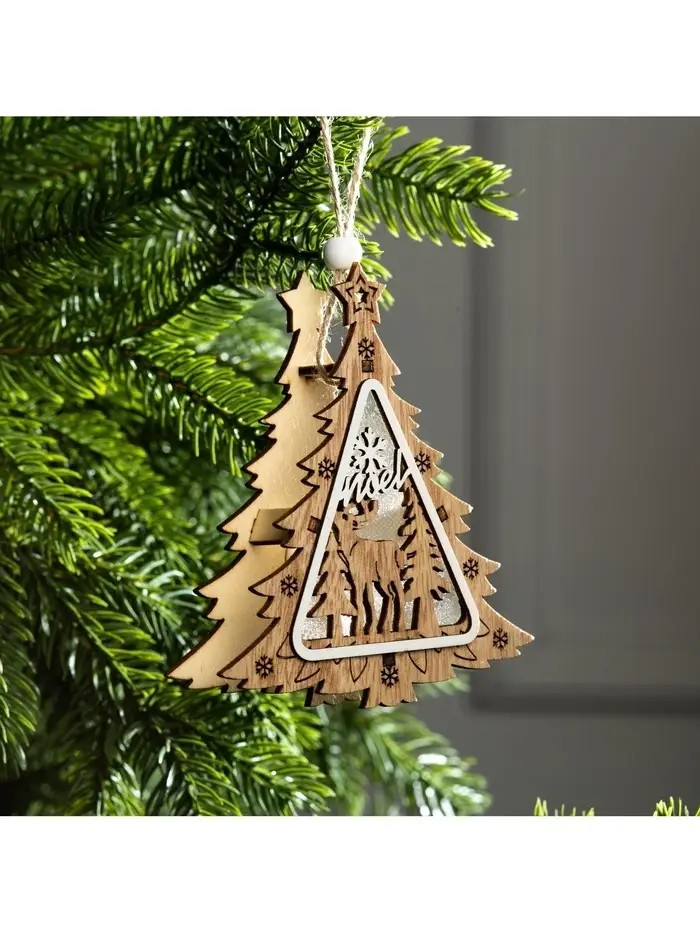 - Чистота скандинавского дизайна: Лаконичный силуэт ёлочки с оленем в бежевых тонах. Минималистичная форма соответствует эстетике северного стиля.