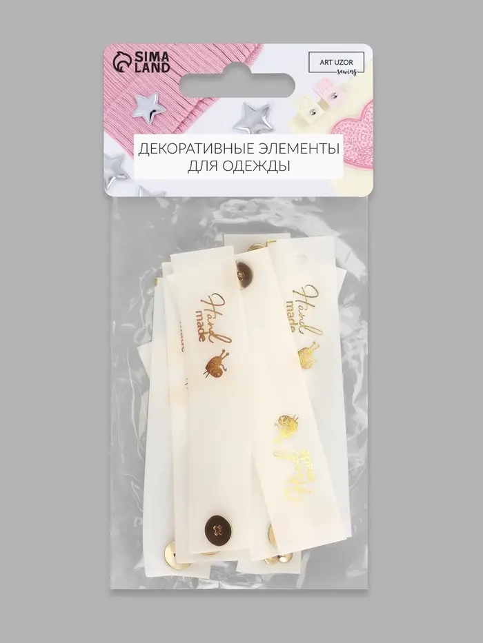 Бирка с кнопкой Hand made, 8×1.8 см, 10 шт., цвет золотой, белый