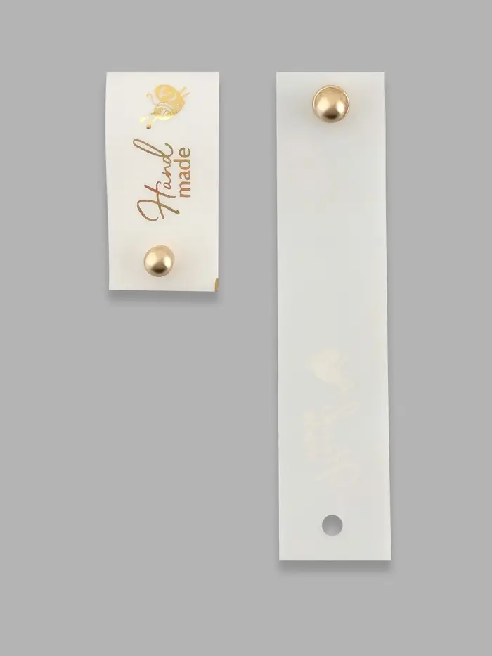 Эта элегантная бирка с кнопкой предназначена для оформления handmade-работ, подарков и сувениров. Ее золотой оттенок добавляет изысканности и особого шарма, подчеркивая уникальность каждого изделия. Благодаря силиконовой основе и удобной крепежной кнопке, она легко прикрепляется к упаковке или открыткам, делая подарок более презентабельным.