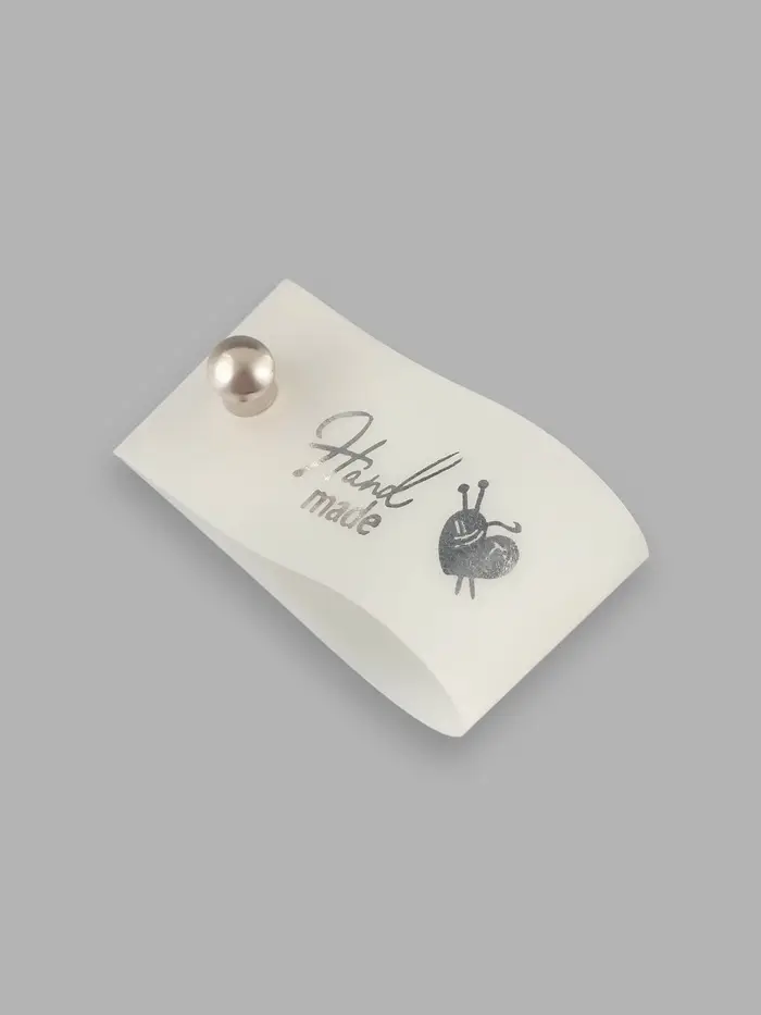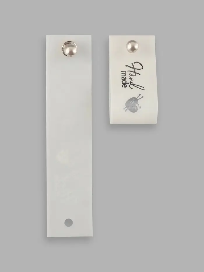 Бирка с кнопкой Hand made, 8×1.8 см, 10 шт., цвет серебряный, белый