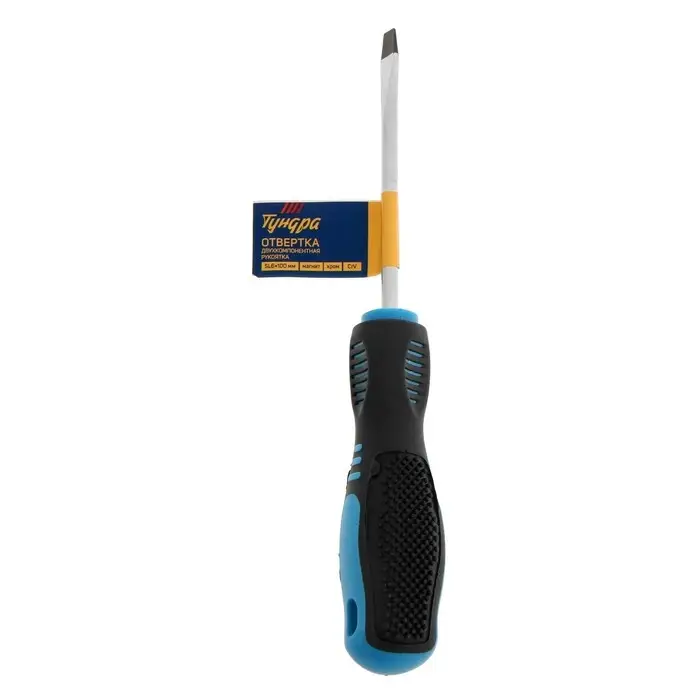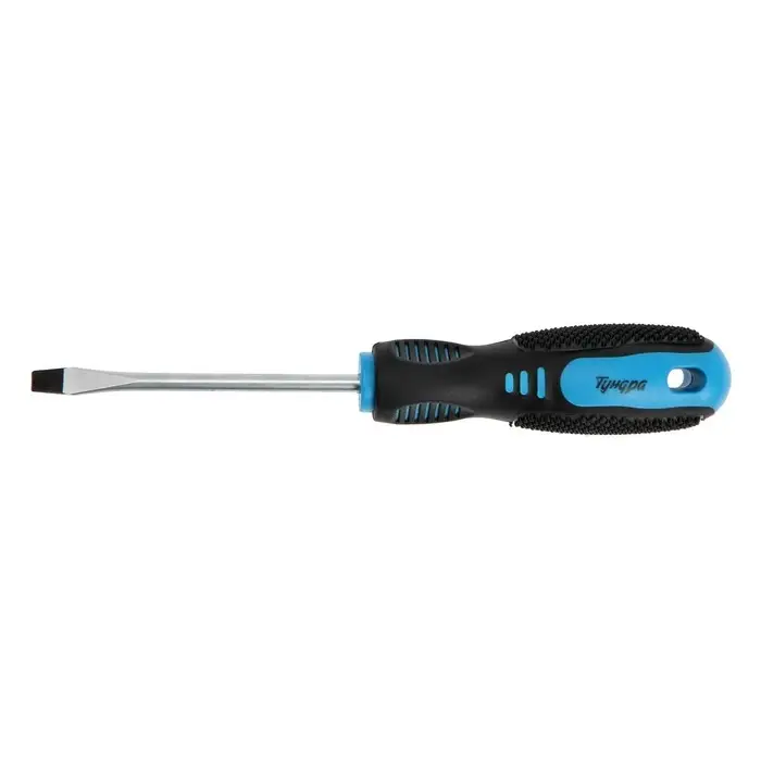 Отвертка шлицевая ТУНДРА, сатин, магнит, двухкомпонентная рукоятка, SL5×100 мм