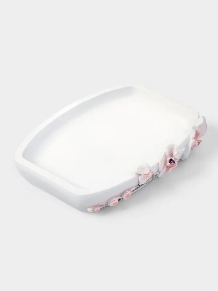 Изготовленный из качественного полирезина, этот набор сочетает в себе прочность и изящество. Белый цвет и утонченный цветочно-растительный рисунок создают ощущение свежести и легкости, подходя для любого стиля ванной комнаты.