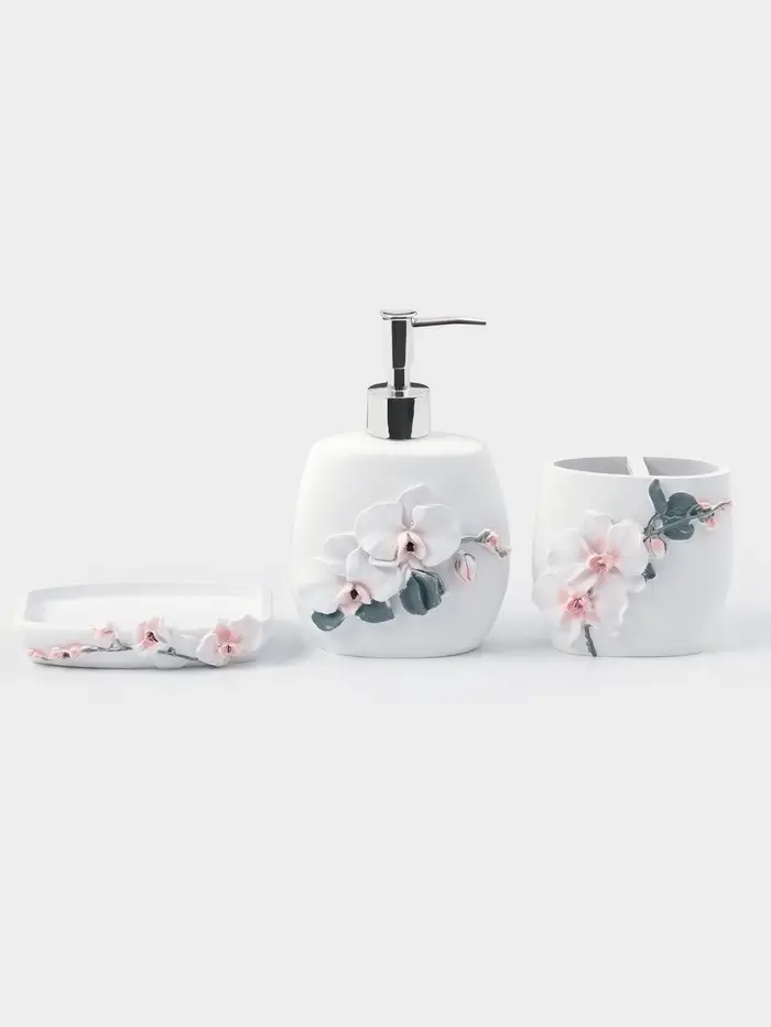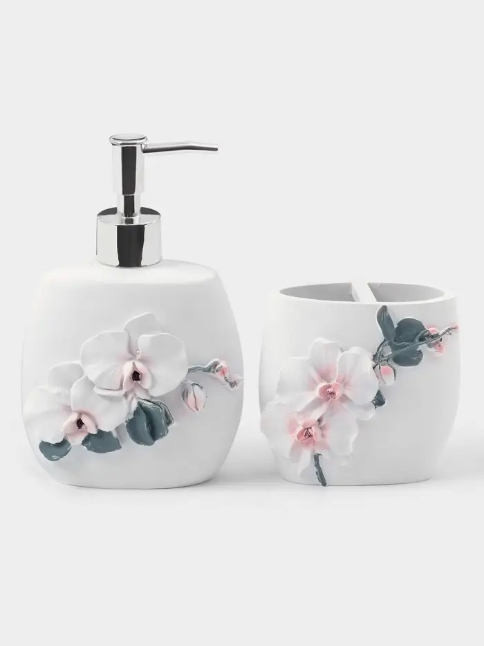 Набор аксессуаров «Орхидея» — это не просто функциональный предмет, а настоящий акцент, который добавит вашему пространству утонченности и шарма. Позвольте себе наслаждаться каждым моментом в ванной, окружая себя красотой и комфортом!