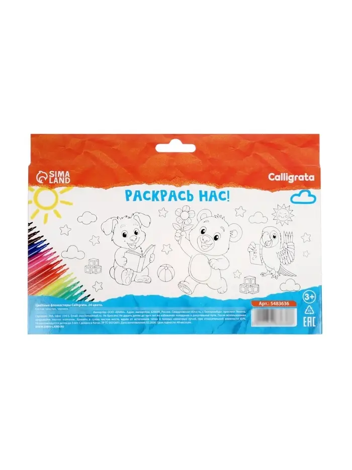 Набор фломастеров Calligrata содержит 24 ярких и насыщенных цвета. Вентилируемый колпачок обеспечивает безопасное рисование для ребенка . Идеально подходят для детей от 3-х лет и для тех, кто только начинает свой творческий путь. Фломастеры состоят из пластика, чернил. Упаковка представлена в виде цветной картонной коробки. Благодаря фломастерам Calligrata Вы сможете воплотить все свои творческие фантазии в реальность.