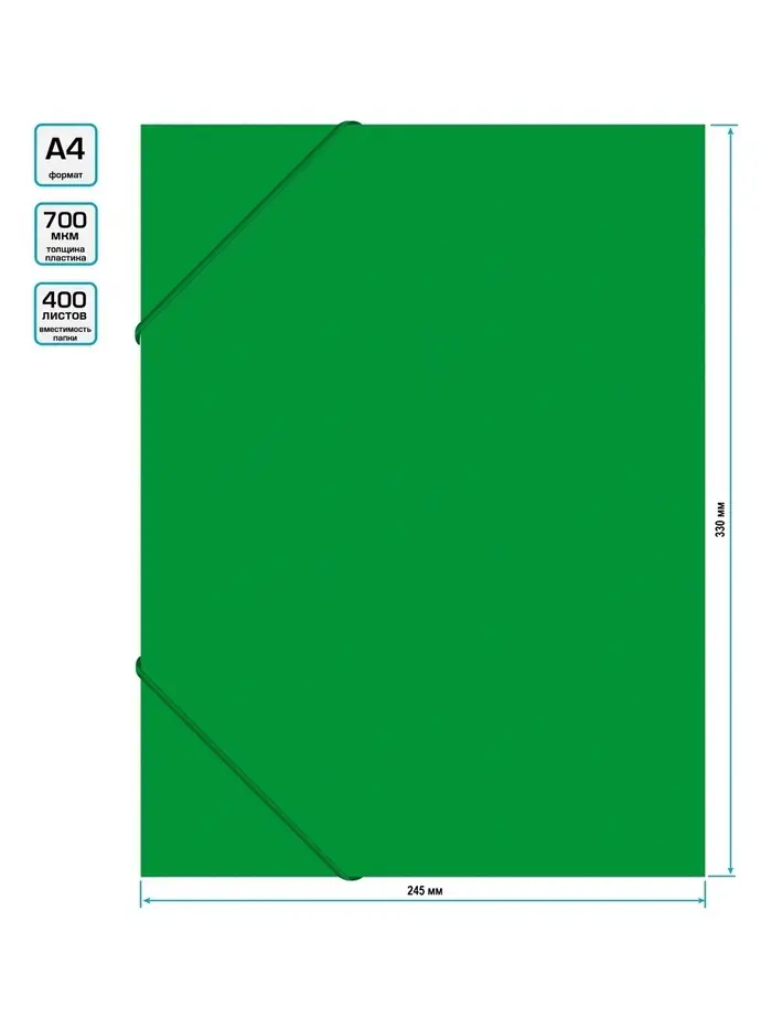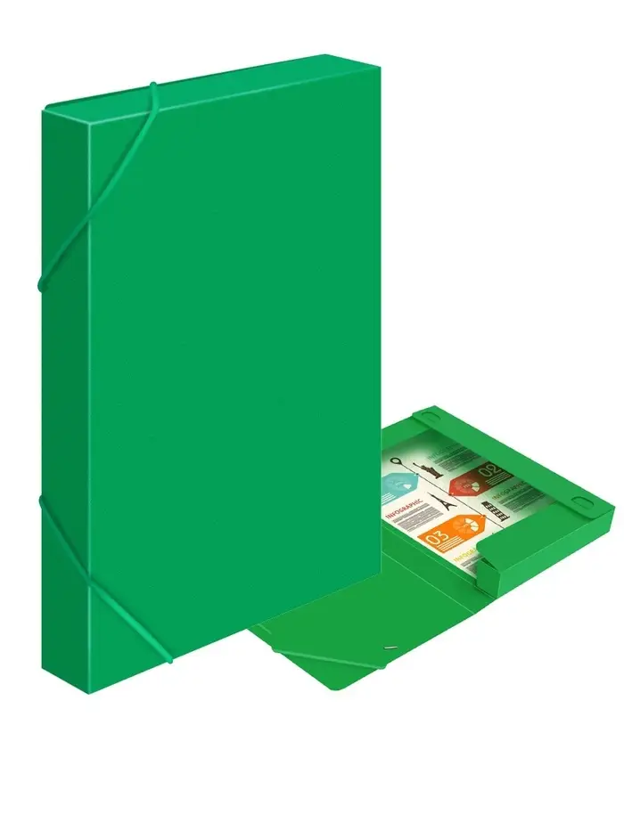 Папка-короб на резинке А4, 700 мкм, Calligrata, корешок 40 мм, до 300 листов, зелёная