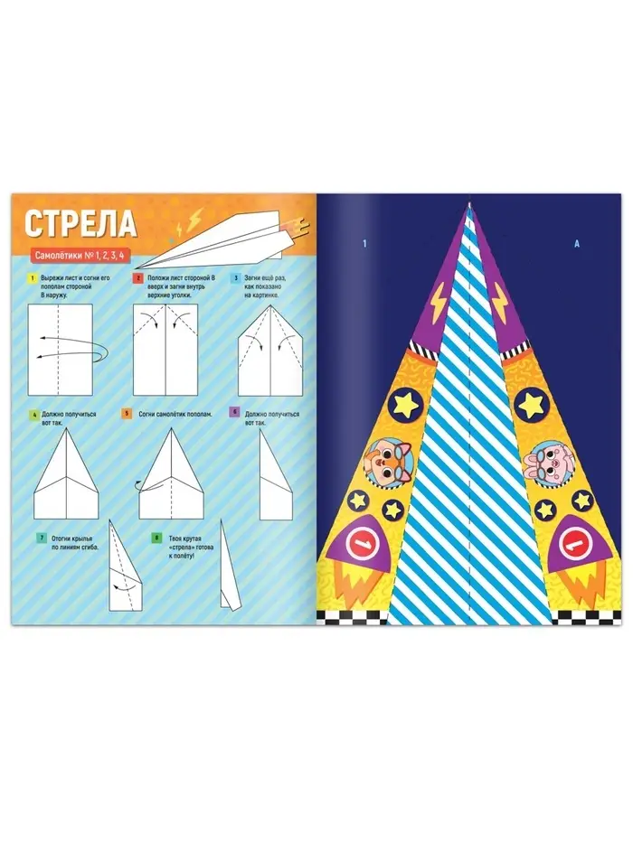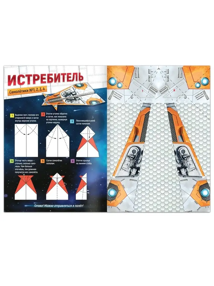 - Каждая книга содержит по 8 заготовок для создания цветных моделей самолётов с пошаговыми инструкциями.
