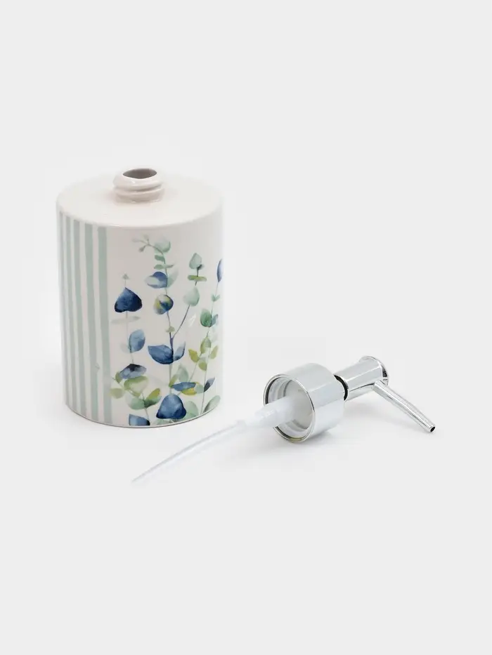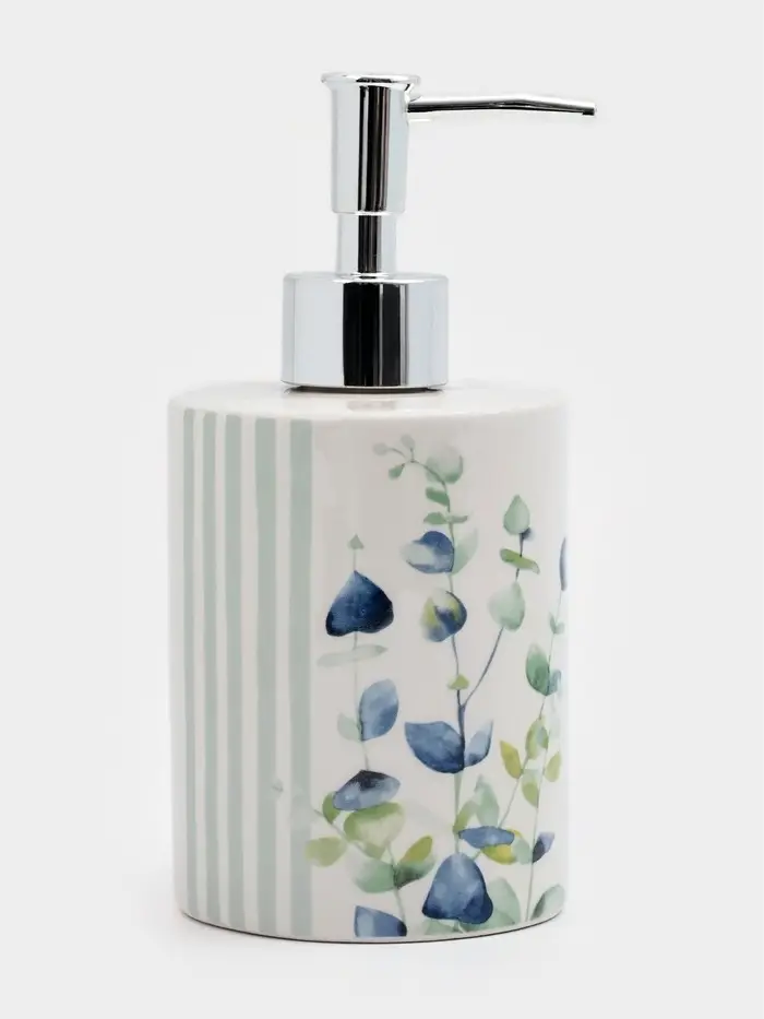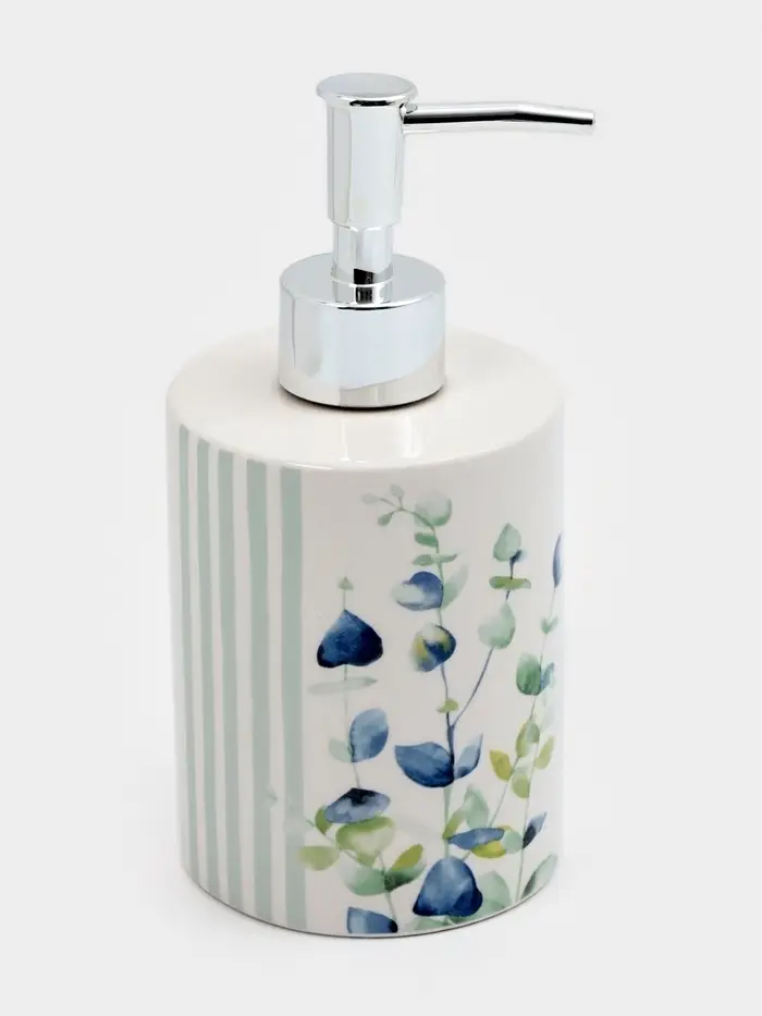 Придайте вашему пространству атмосферу свежести и элегантности с дозатором для жидкого мыла «Эвкалипт». Этот стильный аксессуар не только выполняет практическую функцию, но и станет изысканным декором для вашей ванной комнаты или кухни. Вдохновленный природой, он выполнен в белом и зелёном цветах, украшен растительным орнаментом, что добавляет нотку уюта и гармонии в любое помещение.
