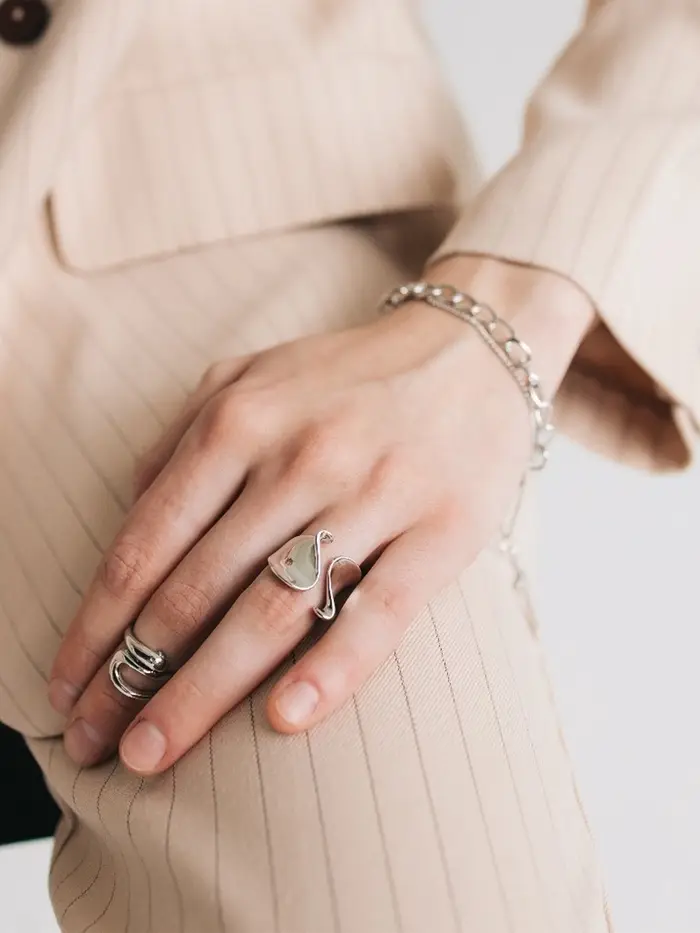- Современный минимализм: лаконичный дизайн кольца гармонично вписывается в любой стиль, придавая образу завершённость.