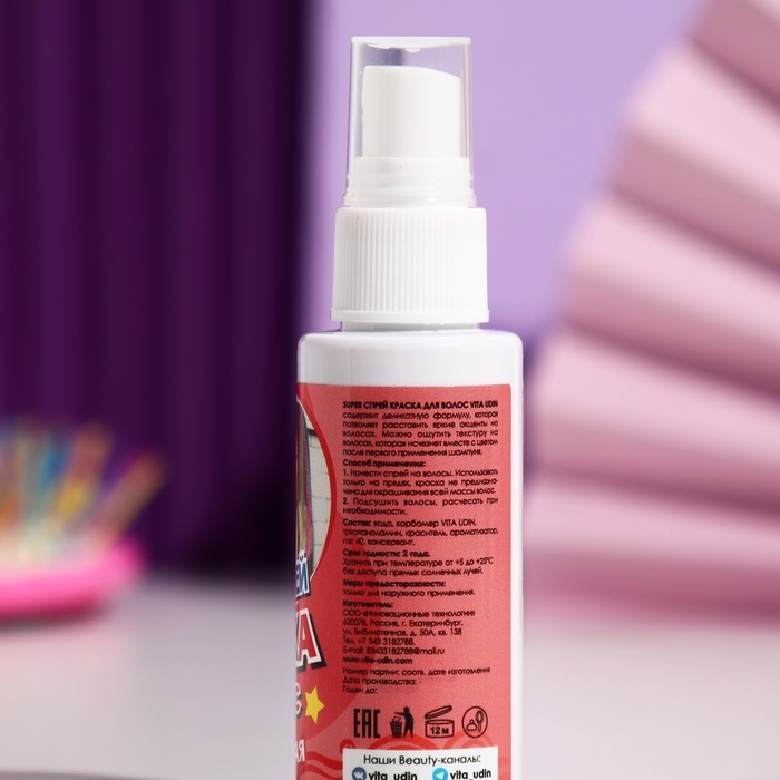 Спрей-краска для волос VITA UDIN, красная, 50 мл