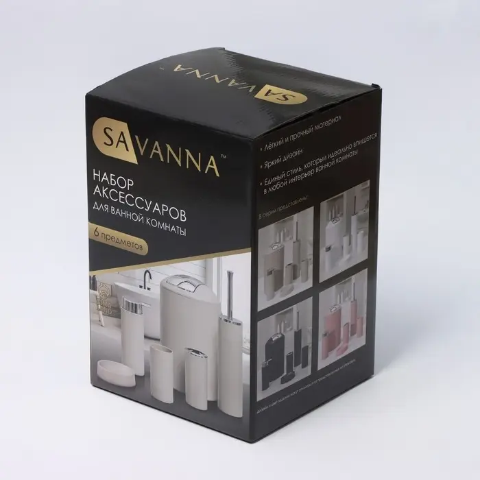 Набор аксессуаров для ванной комнаты SAVANNA «Сильва», 6 предметов (дозатор, мыльница, 2 стакана, ёршик, ведро), цвет серый