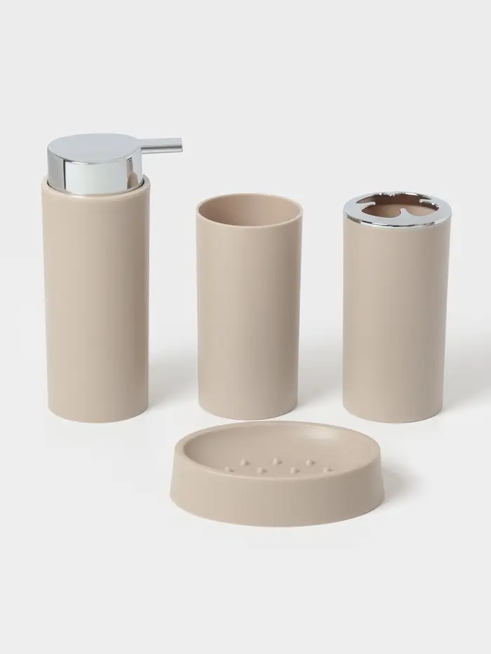 Аксессуары для ванной SAVANNA Monro, 4 предмета, мыльница, дозатор для мыла 450 мл, стакан, баночка, белые