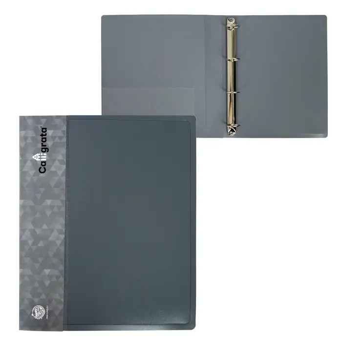 Папка на 2 кольцах А4, Calligrata, 27 мм, 700 мкм, внутренний и торцевой карман, серая