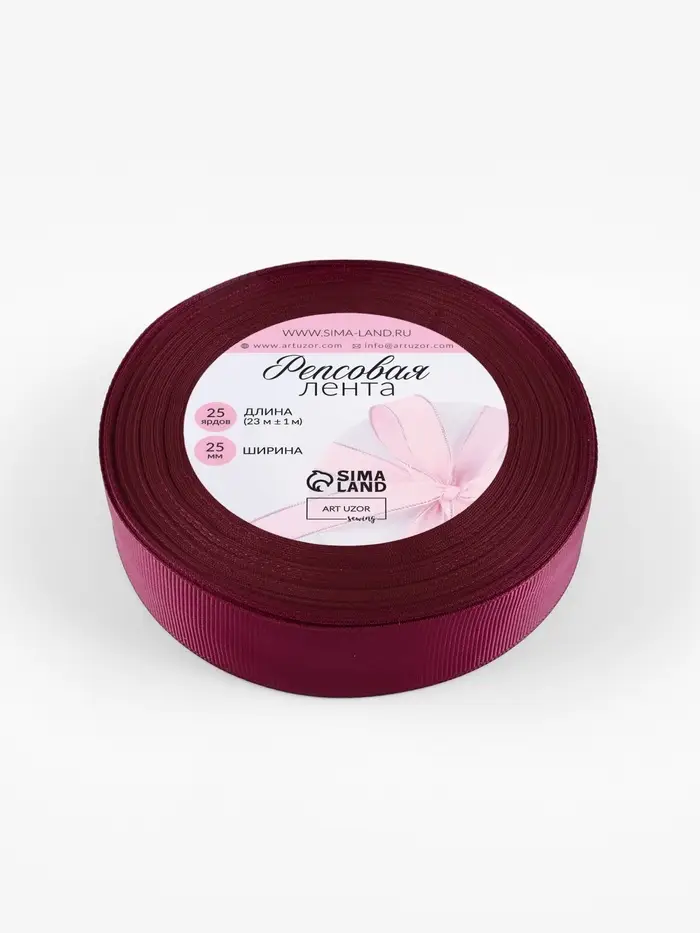 Лента репсовая, 25 мм, 23±1 м, бордовая №80