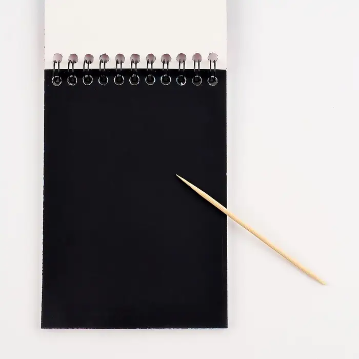 Блокнот с чёрными листами вам неинтересен? Но не торопитесь уходить, это волшебный блокнот! Под чёрным фоном скрывается сияющее покрытие, которое сделает ваши рисунки сказочными.
