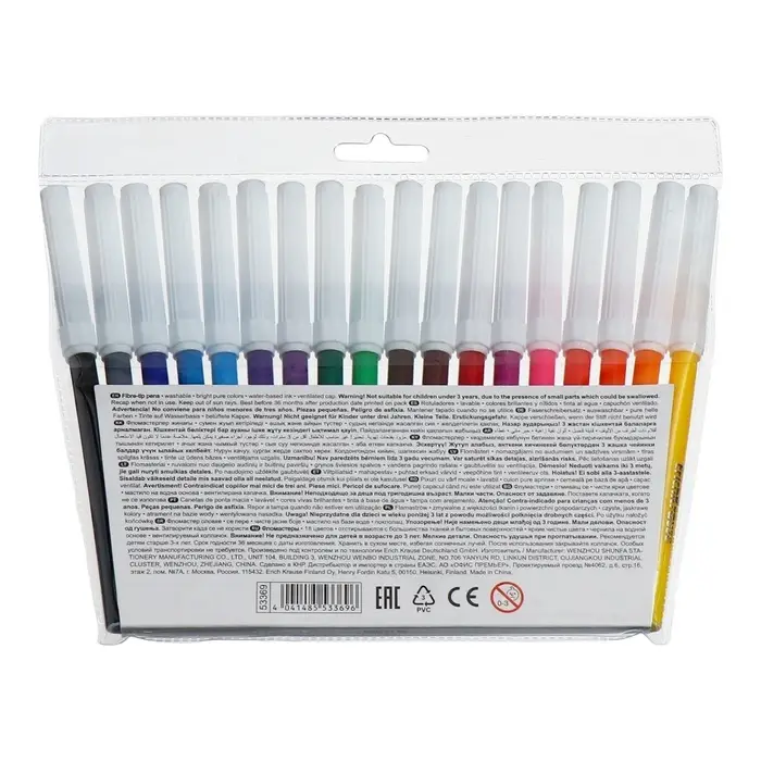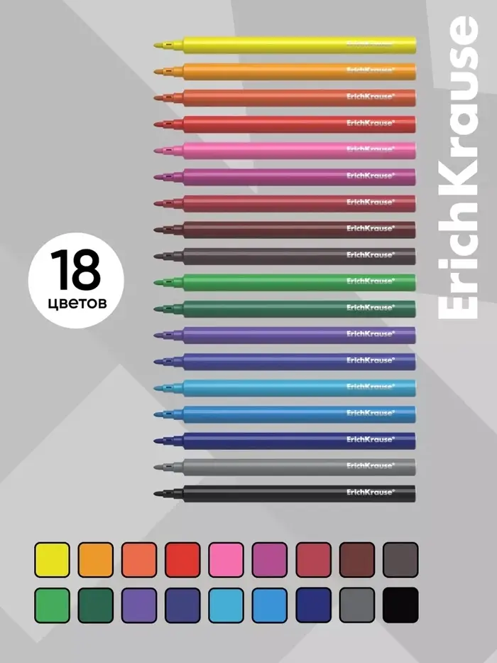 Фломастеры 18 цветов ErichKrause Basic, на водной основе, яркие цвета, вентилируемый колпачок