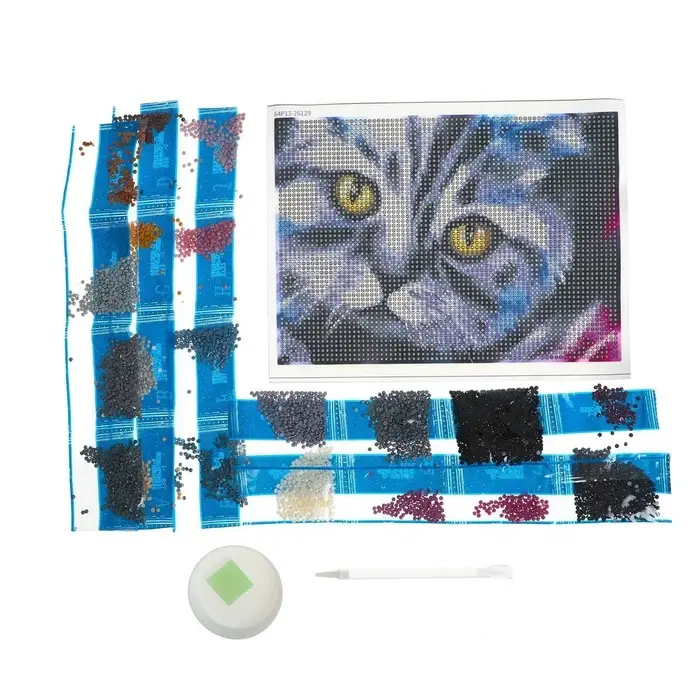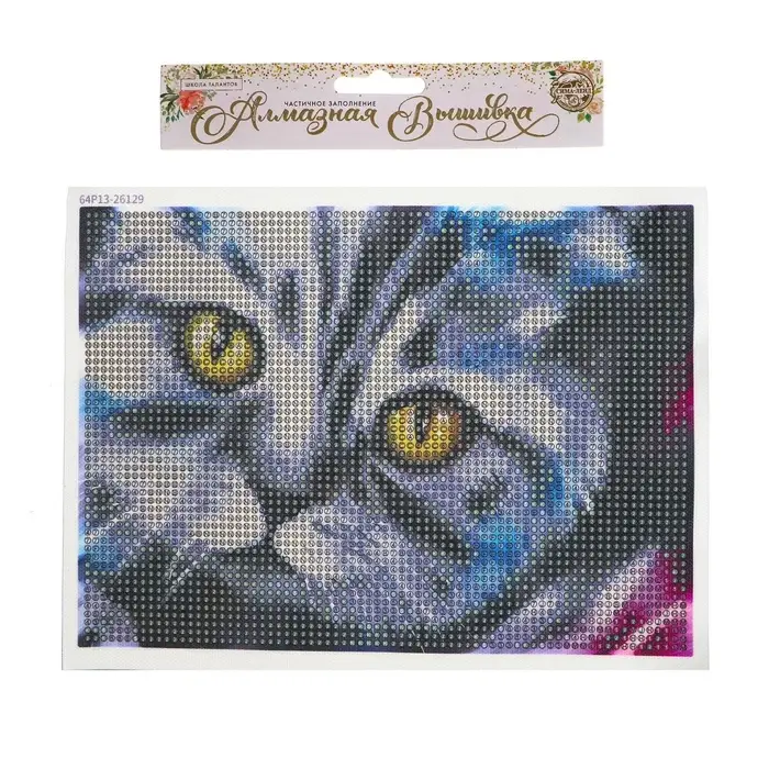 Алмазная мозаика с полным заполнением на холсте «Кот», 15×21 см