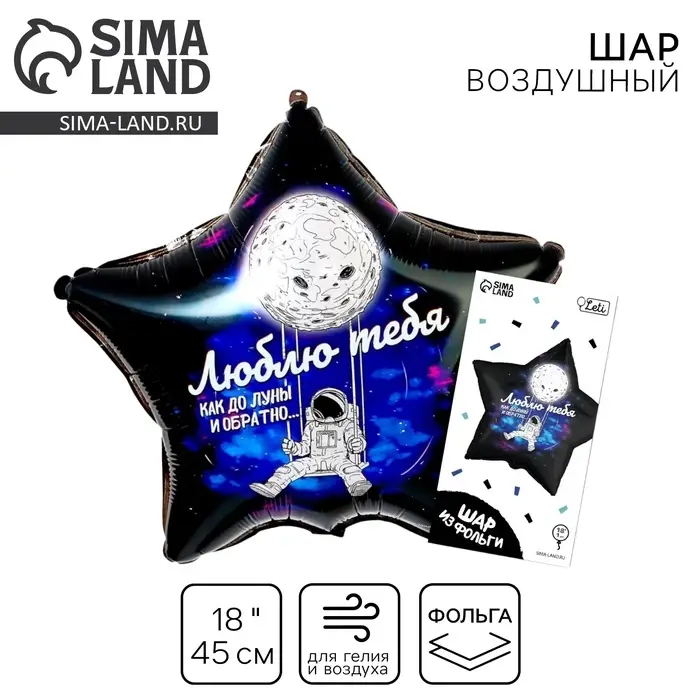 Воздушный шар фольгированный 18" «Люблю тебя», звезда, с подложкой