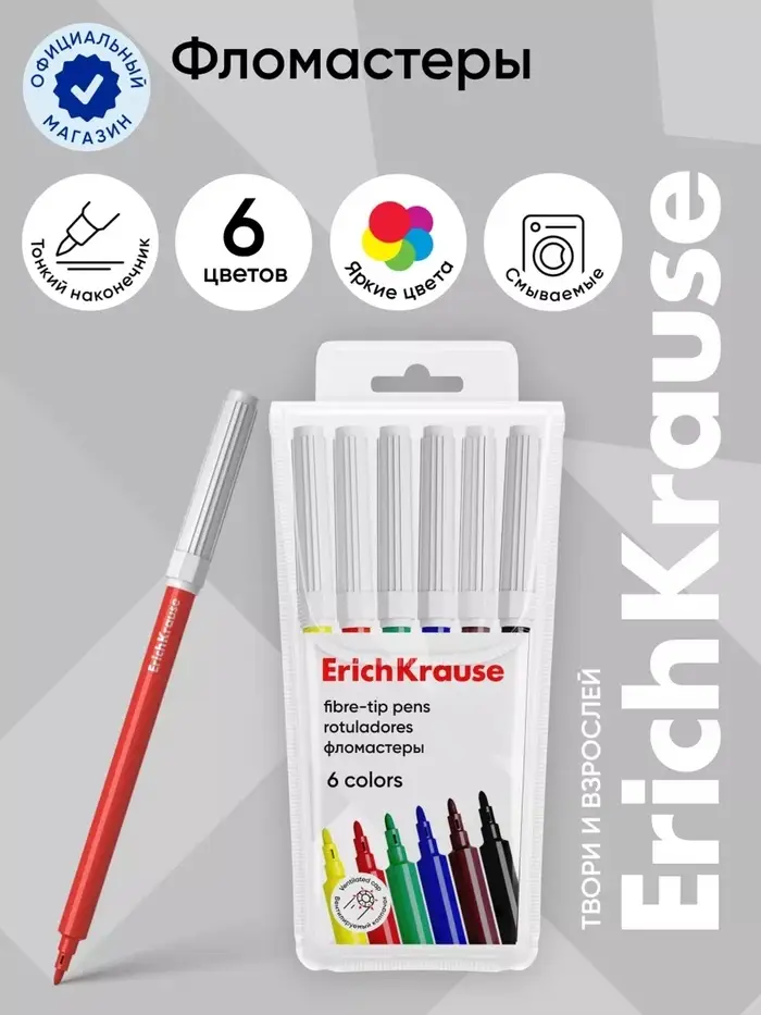 Фломастеры ErichKrause® Basic со смываемыми чернилами на водной основе.