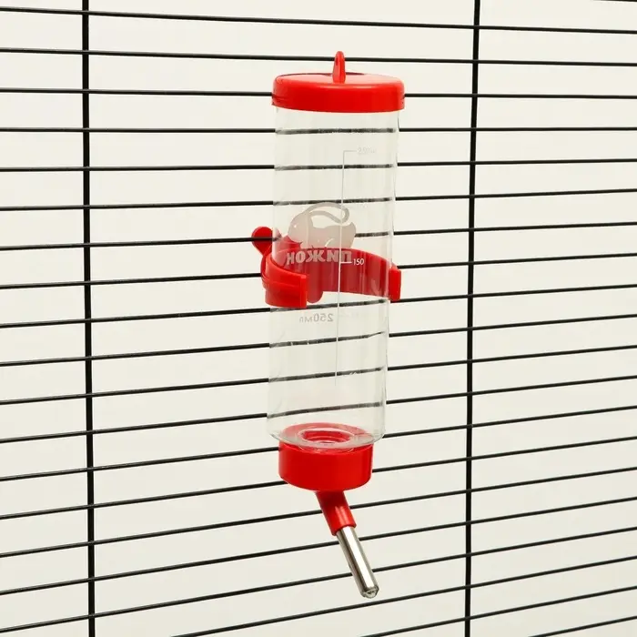 Поилка для грызунов на 250 мл из прочного пластика обеспечивает хомякам, крысам, дегу и морским свинкам стабильный доступ к чистой воде. Ярко-красный цвет легко заметен в клетке — вы всегда видите, когда пора пополнить запас воды.