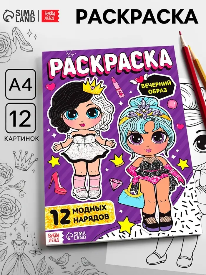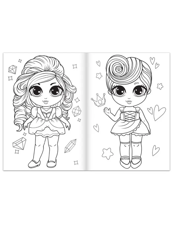 Раскраска из серии «Модный образ» создана специально для девочек. Ведь в ней целых 12 стильных образов!