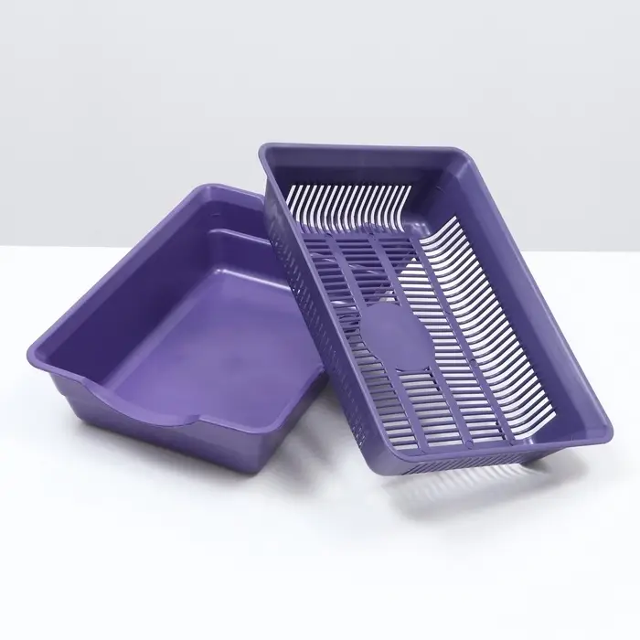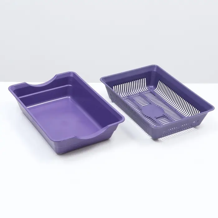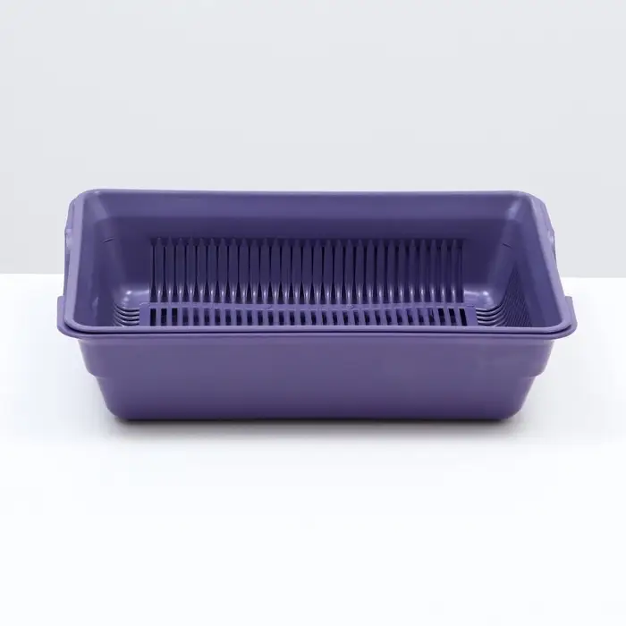 Туалет для кошек, 36×25×9 см, глубокий, с сеткой, пластик, фиолетовый
