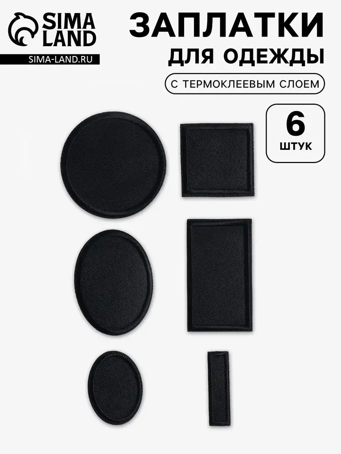 Набор заплаток для одежды, термоклеевые, 6 шт., чёрный