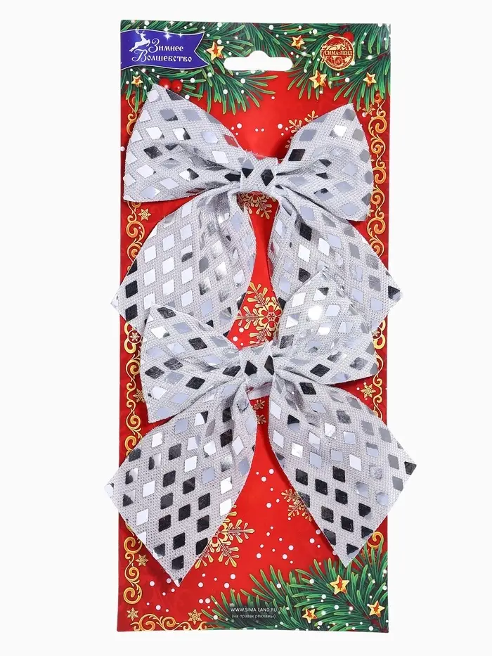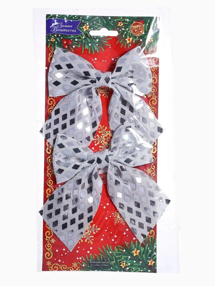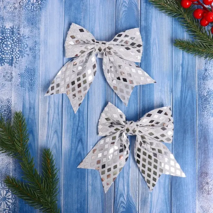 - Два текстильных банта серебристого цвета для ёлочных украшений.