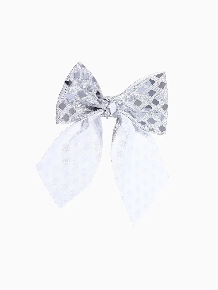 Эти банты выступают как акценты, которые оживляют новогодний интерьер. Их серебристый оттенок напоминает зимний иней, а строгие линии форм гармонируют с разнообразием ёлочных украшений, создавая атмосферу спокойствия и торжества одновременно.