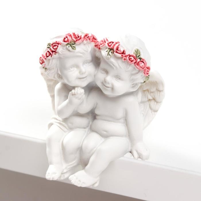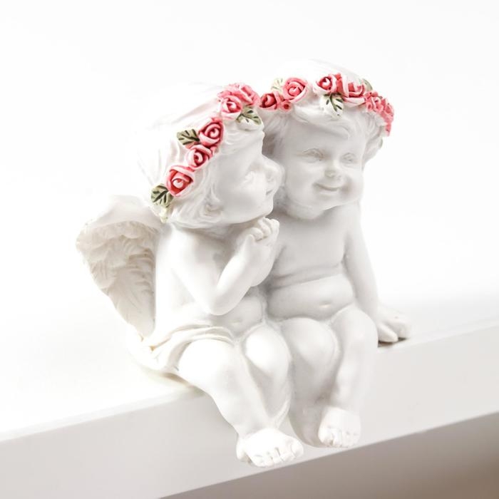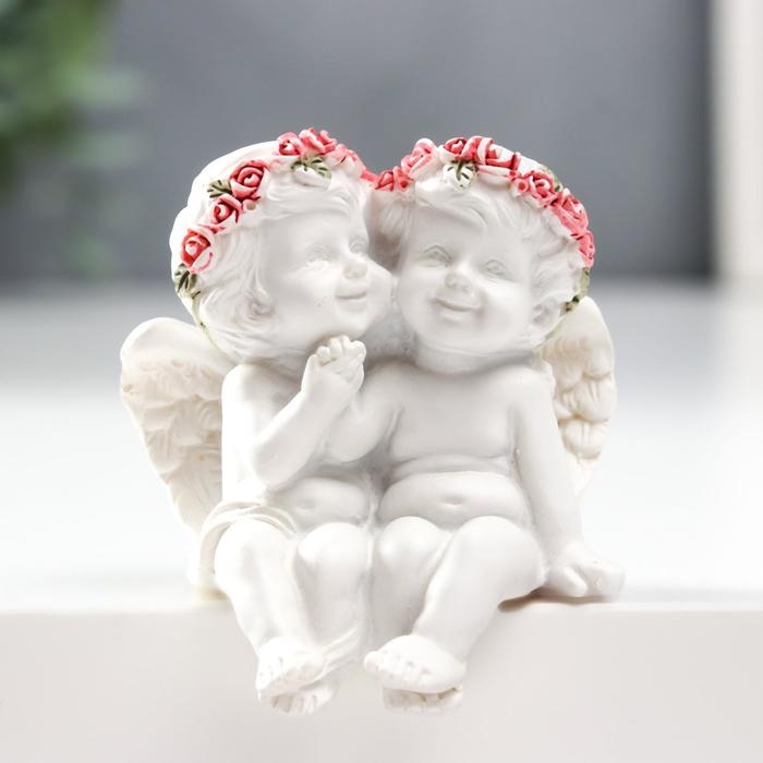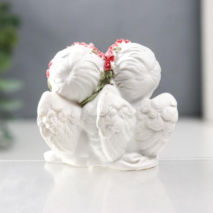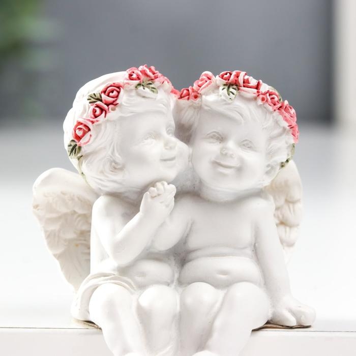 Сувенир полистоун "Белоснежные ангелочки в розовых венках, милуются" 6х5,5х4 см
