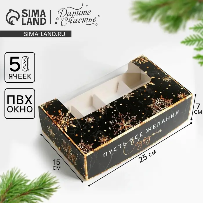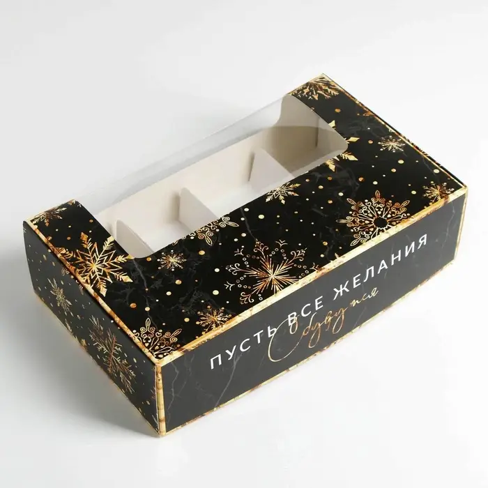 Коробка для эклеров с вкладышами новогодняя «Пусть сбудутся желания», 25×15×7 см