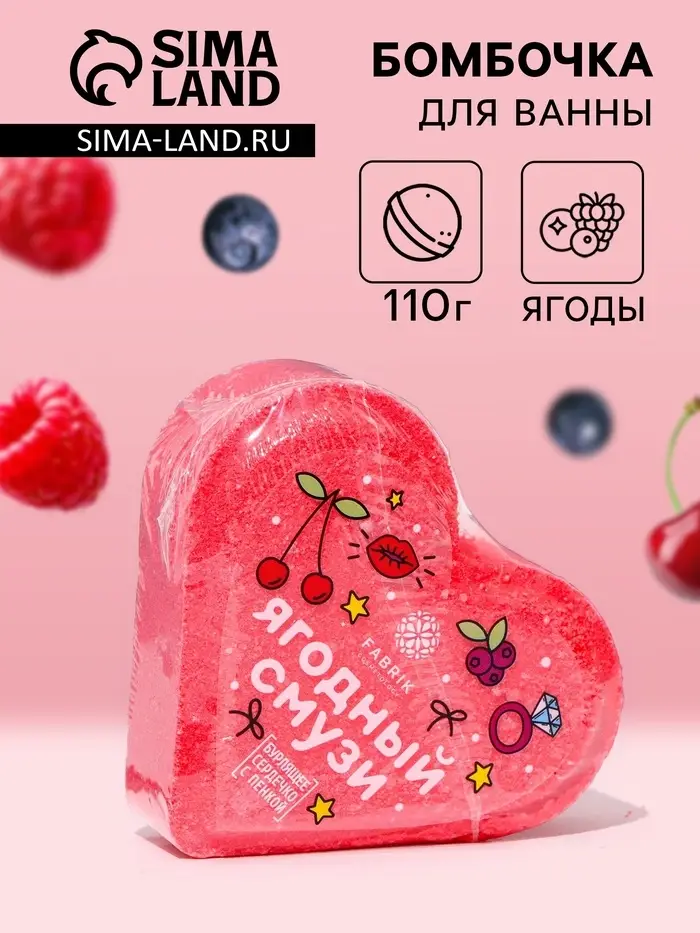Погрузитесь в мир сладких ягодных ароматов с бомбочкой для ванн «Ягодный смузи» от Fabrik Cosmetology. Яркая и весёлая, она превращает обычное купание в увлекательное приключение. При попадании в тёплую воду бомбочка начинает шипеть и растворяться, окрашивая воду в насыщенные цвета и наполняя ванну ароматом спелых ягод.
