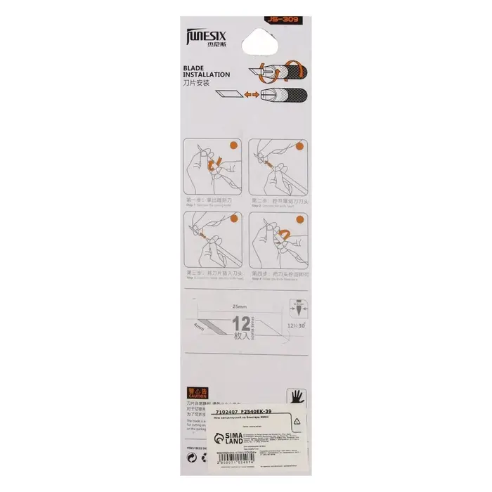 Нож канцелярский 18 мм, металлический, 6 штук лезвий, Zinc-alloy, TOP