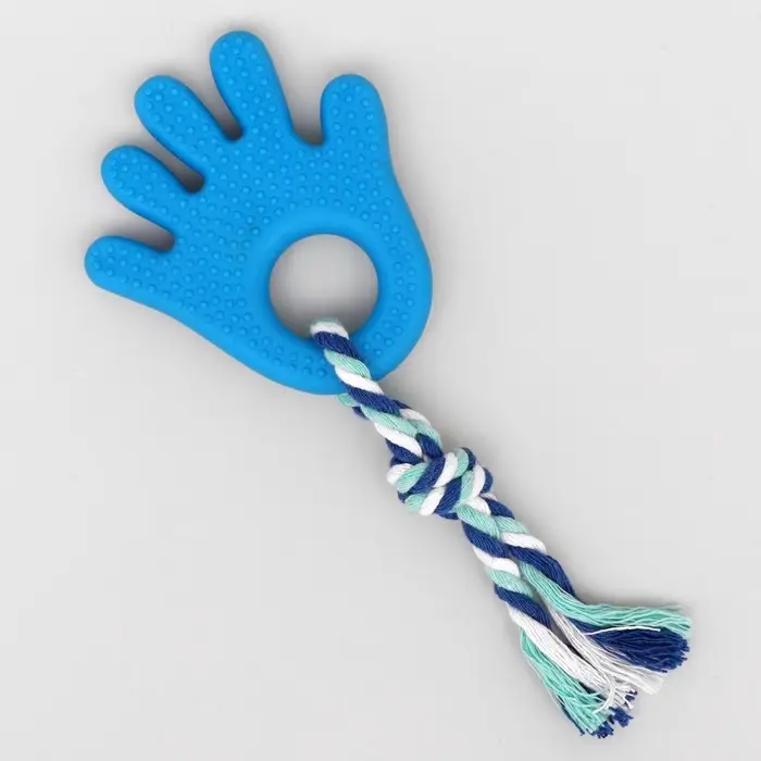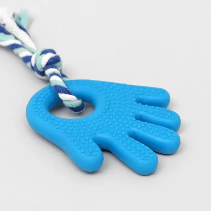 Игрушка жевательная с канатом для собак «Ладошка», 10 см, голубая