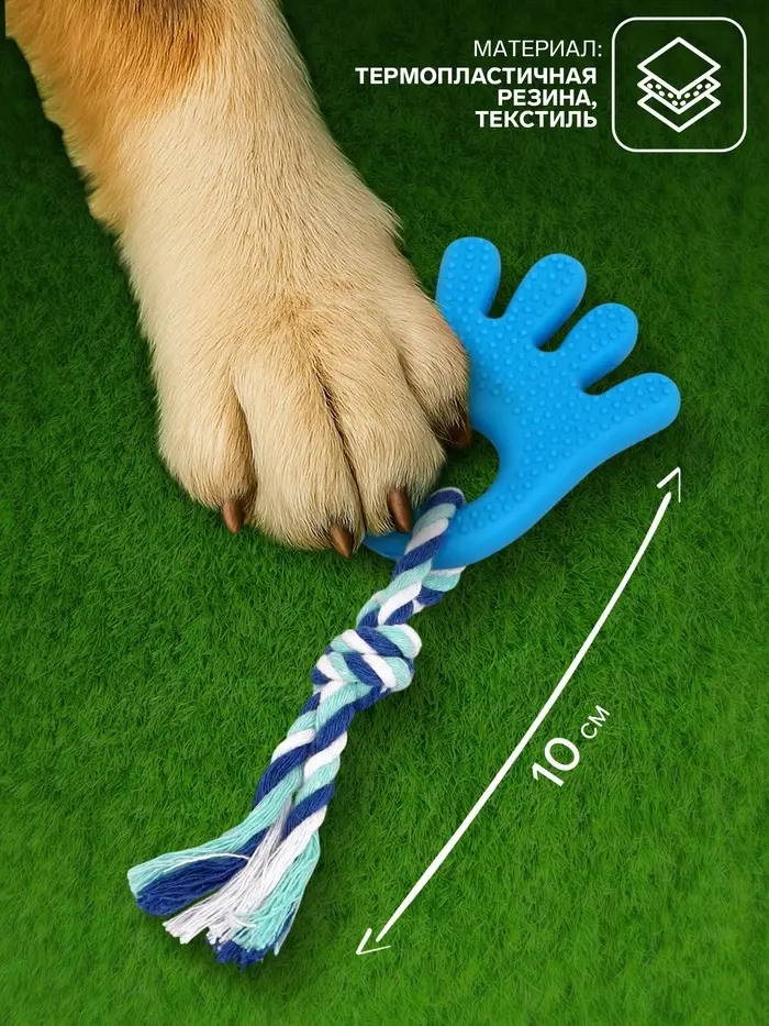 Подарите собаке игрушку-компаньона для активных игр и здоровья зубов! Жевательная игрушка-канат «Ладошка» — это прочное и безопасное изделие из термопластичной резины и текстиля. Она сочетает функции массажера для десен и веселого перетягивания, помогая поддерживать чистоту зубов и удовлетворять жевательный инстинкт питомца.