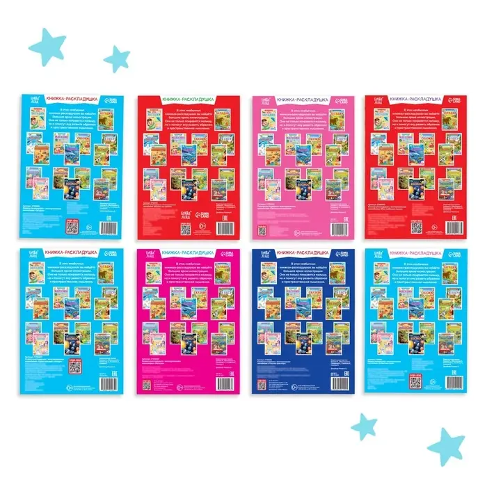 Книжка-раскладушка раскрывается как плакат, в ней нет переплёта, поэтому ребёнку с ней будет удобно заниматься.