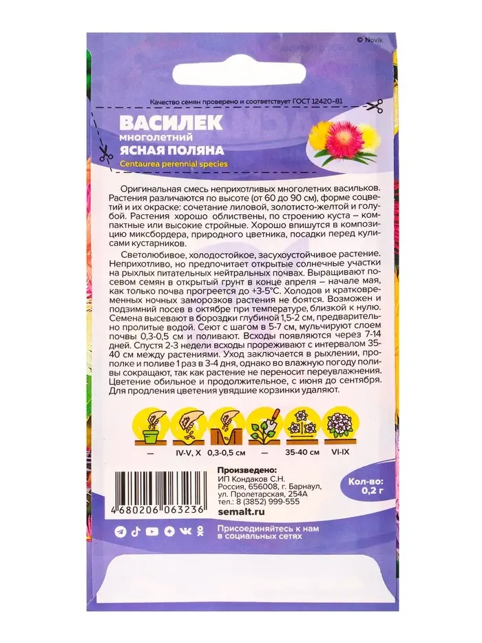 Семена цветов Василек «Ясная Поляна», многолетний, 0.2 г, «Семена Алтая»
