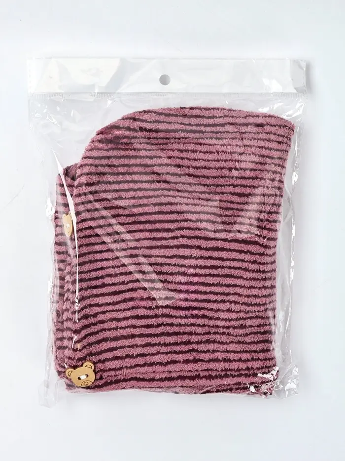 Чалма для сушки волос Доляна, микрофибра, с пуговкой, розовая