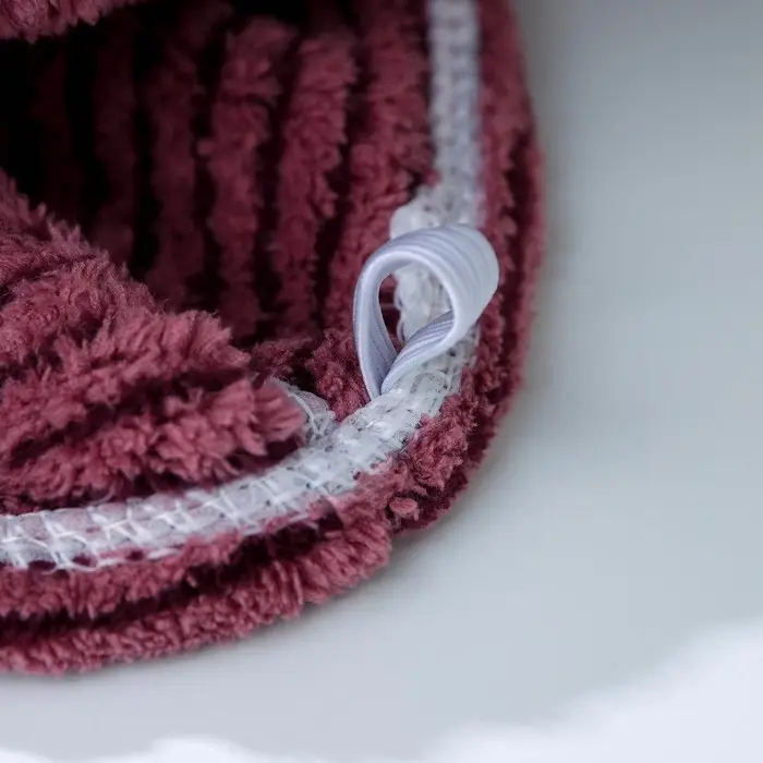 Специальная чалма — удобная альтернатива громоздкому тюрбану из полотенца. Она выполнена из объёмной махровой ткани, отлично впитывает влагу и обеспечивает естественную сушку волос.