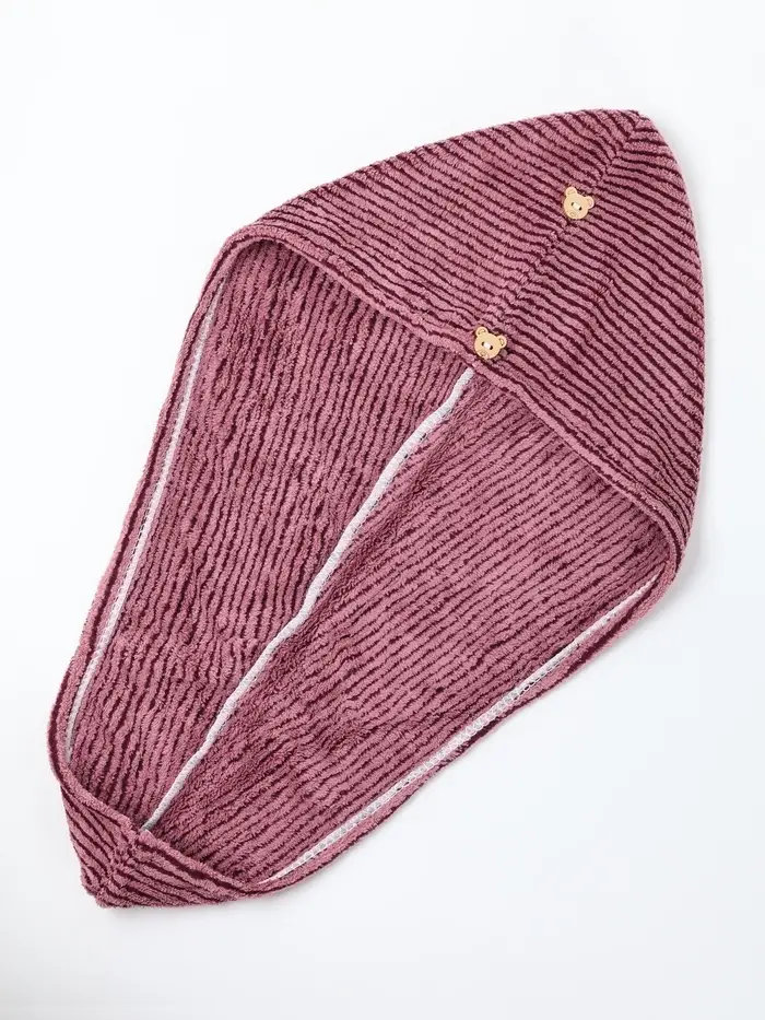 Чалма для сушки волос Доляна «Медвежонок», микрофибра, фиолетовая