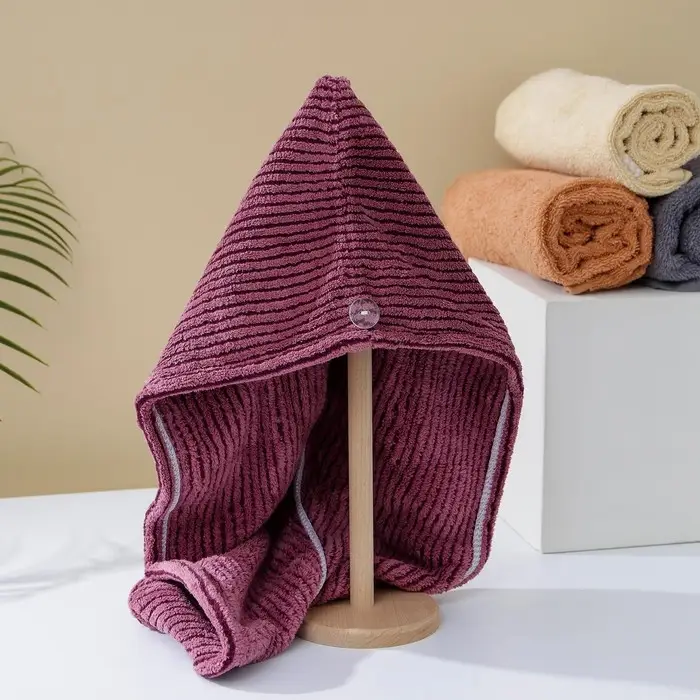 Чалма для сушки волос Доляна, микрофибра, с пуговкой, бордовая