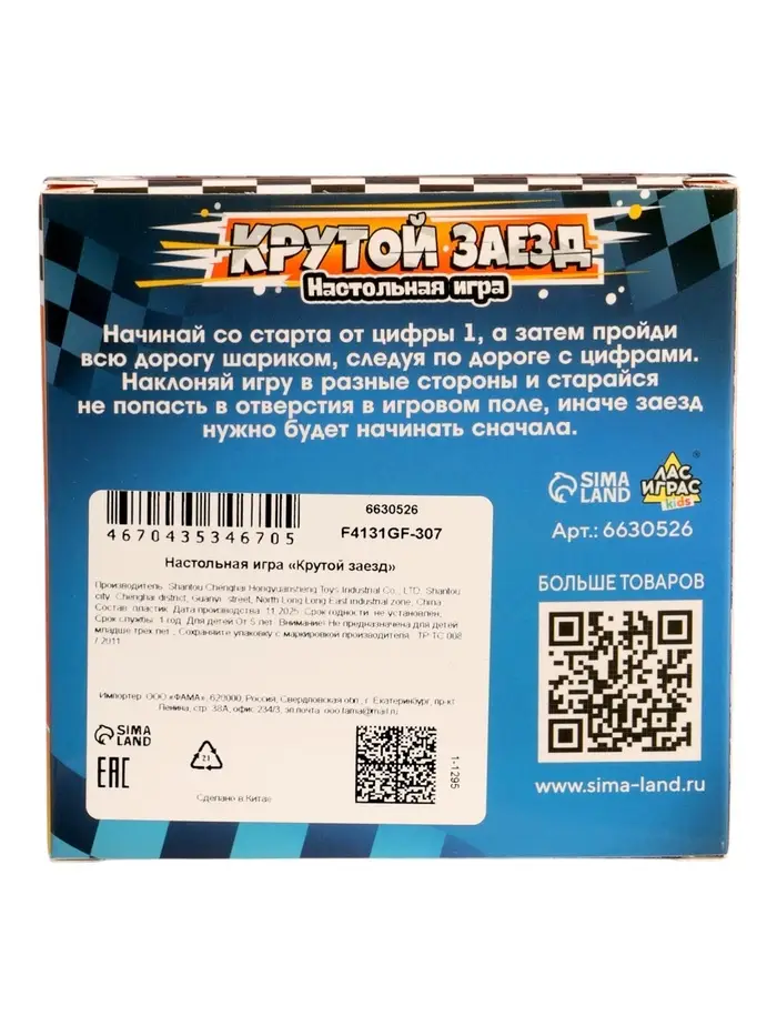 Настольная игра рекомендована детям старше 5 лет и рассчитана на 1 игрока. Вы можете по очереди устраивать соревнования, кто быстрее дойдёт до финиша.