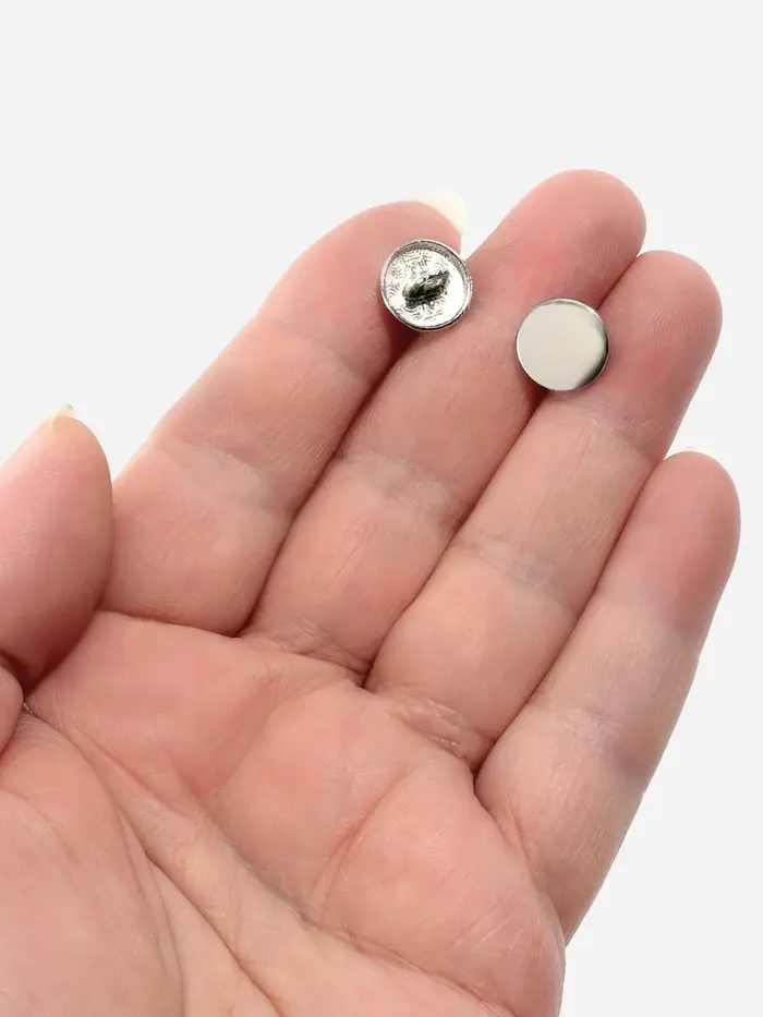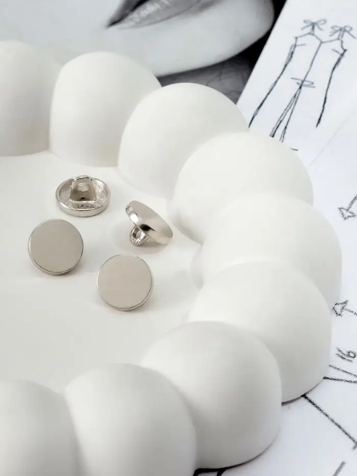 Набор металлических пуговиц на ножке диаметром 11 мм в серебристом глянцевом исполнении — это практичный и стильный элемент для оформления блузок, рубашек и других видов верхней одежды. Их универсальный дизайн и качественные материалы делают их подходящими для различных швейных проектов и обновления гардероба.