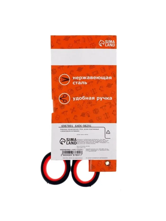 Ножницы канцелярские 14 см, ручки пластиковые с резиновыми вставками