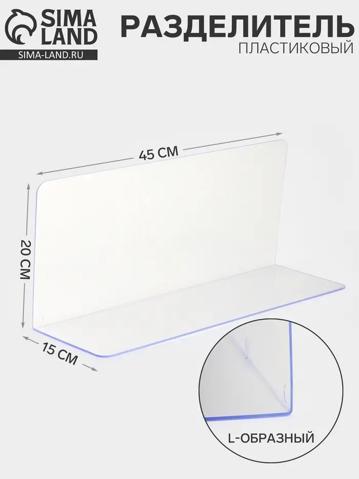 Пластиковый разделитель L-образный, 45×15×20 см, прозрачный
